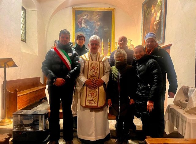 Tanta gente e cappella di Sant’Antonio Abate impossibilitata ad accogliere tutti i fedeli accorsi per la Santa Messa officiata da don Giorgio Nervo.