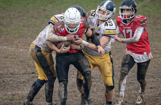 Nel secondo tempo, Brancaleoni rimetteva le cose a posto con due touchdown, uno per quarto. Nel terzo periodo segnava con una corsa da 10 yard, e nell’ultimo periodo lanciava un touchdown pass da 16 yard per Piacentini per il 25-14 finale.