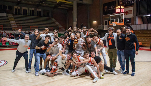 Dopo aver strappato il ticket per l’Interzona la scorsa settimana, al PalaFerraris gli arancio-neri hanno inanellato due successi convincenti, prima in semifinale con Pallacanestro Saluzzo (5 maggio 2025) poi nella finalissima con Novipiù Campus Piemonte (6 maggio 2025), che sono valsi il massimo titolo giovanile regionale.