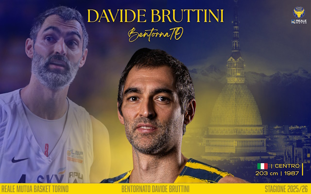 Torino, lunedì 23 giugno 2025 – Reale Mutua Basket Torino è lieta di annunciare l’ingaggio di Davide Bruttini, centro classe 1987, che vestirà la maglia gialloblù nella stagione 2025/2026.